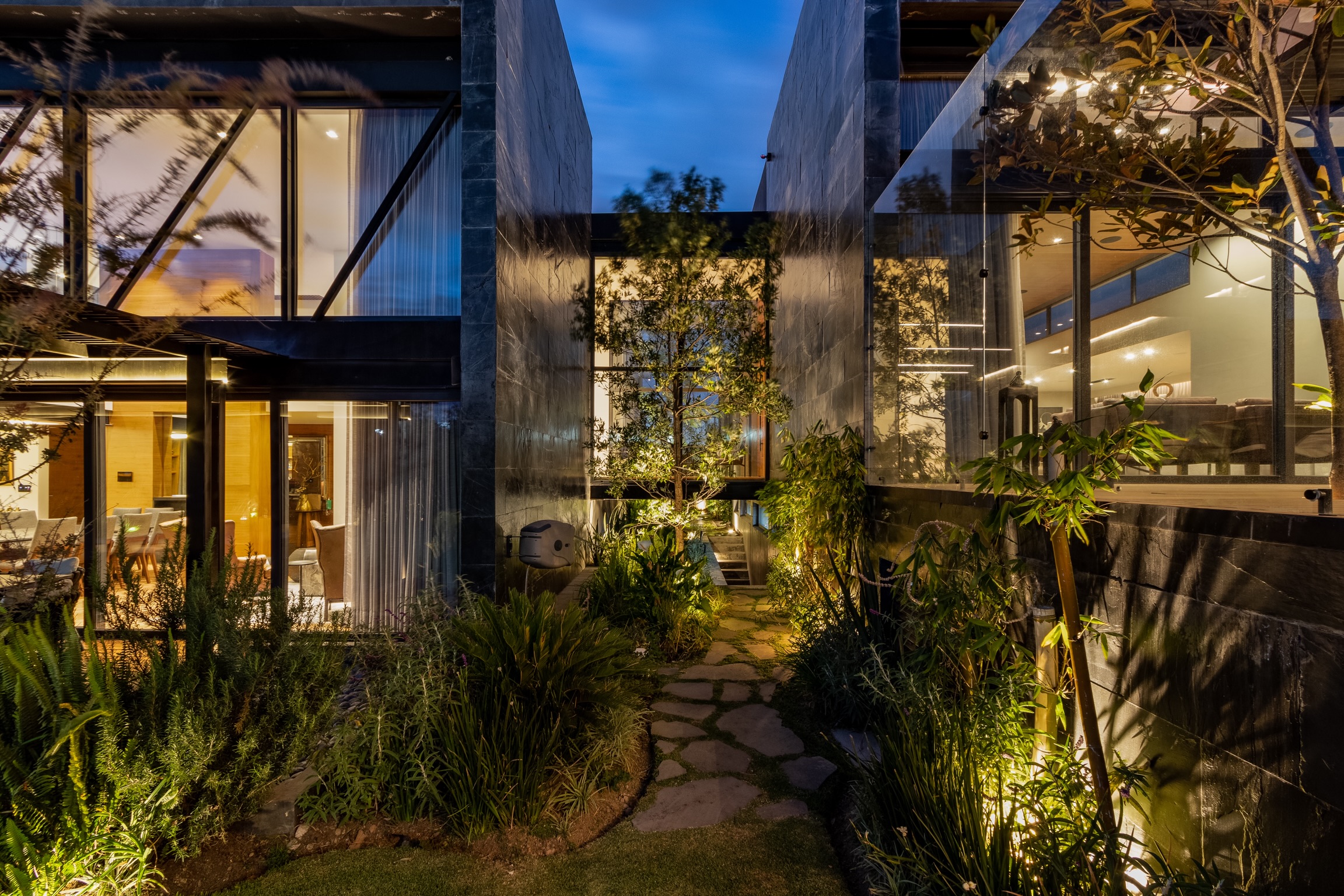 Cada fachada se convierte en un plano narrativo donde la luz construye lectura, profundidad y escala. La iluminación arquitectónica exterior revela texturas, geometrías y volúmenes, generando una percepción clara de la forma construida y de su relación con el contexto urbano.